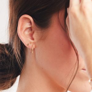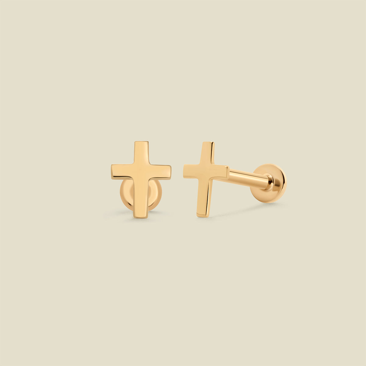 This delicately designed cross is a beautiful symbol of the faith you carry. Each petite, solid gold earring features a smooth, flat back that inserts through the back of your piercing and an earring top that screws in for a 24/7 secure and comfortable fit. Live loudly and sleep soundly when you reimagine your routine in earrings made to support your story.