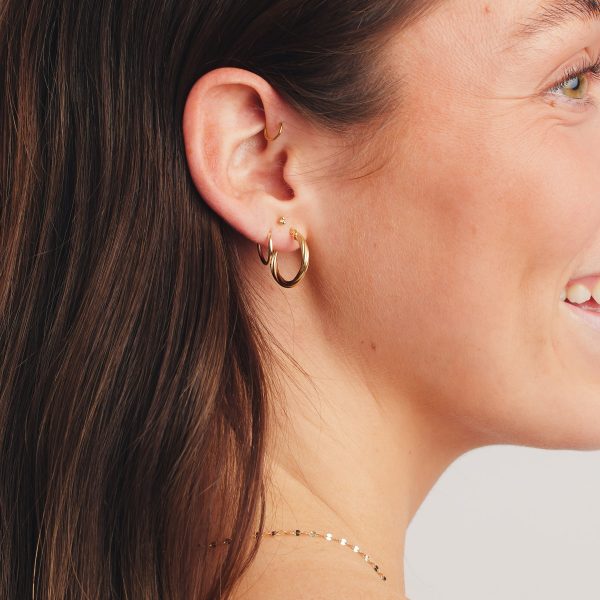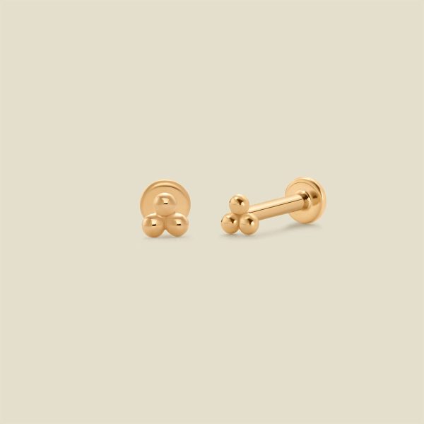 This contemporary favorite features 3 tiny beads for a versatile look that never stops serving. Each petite, solid gold earring features a smooth, flat back that inserts through the back of your piercing and an earring top that screws in for a 24/7 secure and comfortable fit. Live loudly and sleep soundly when you reimagine your routine in earrings made to support your story.