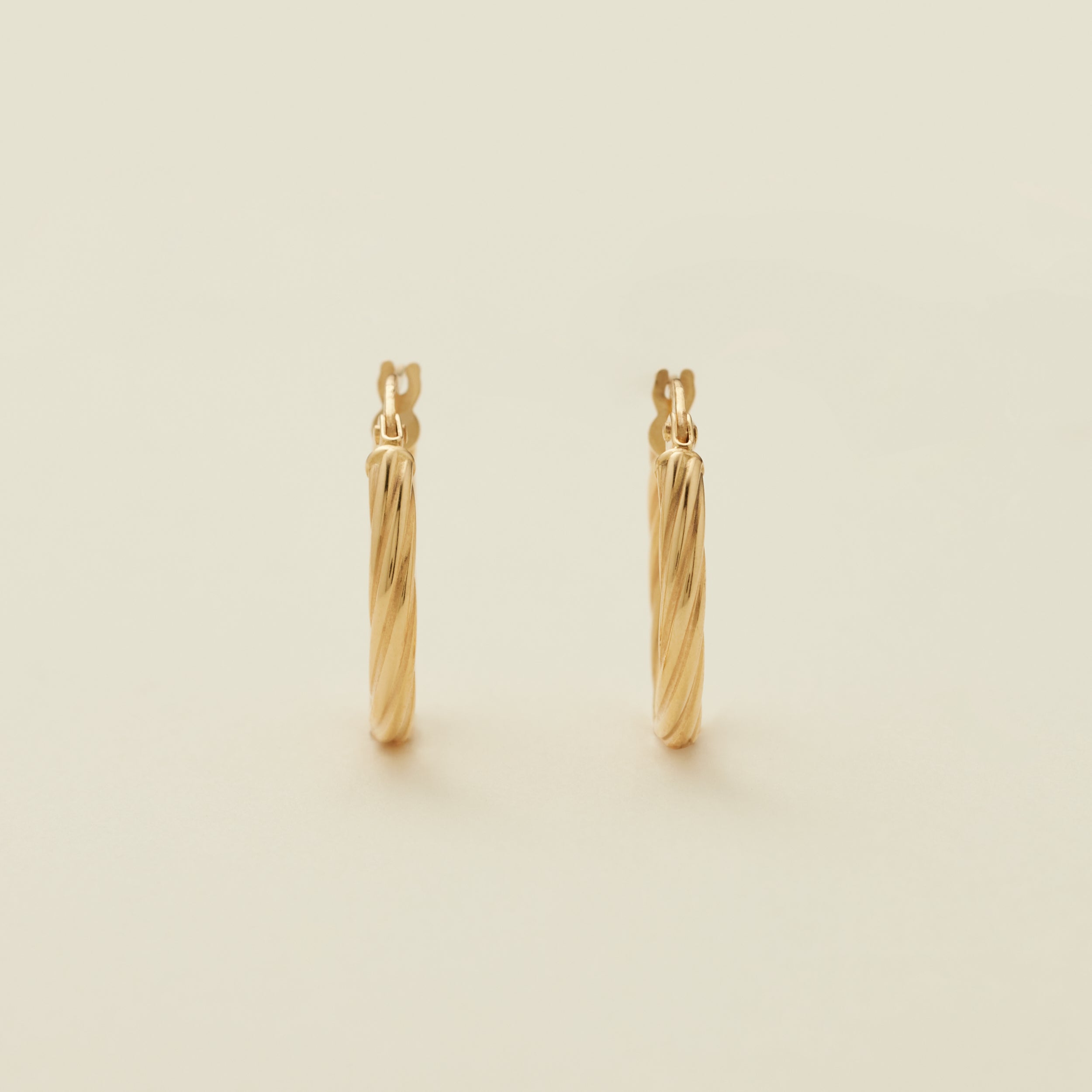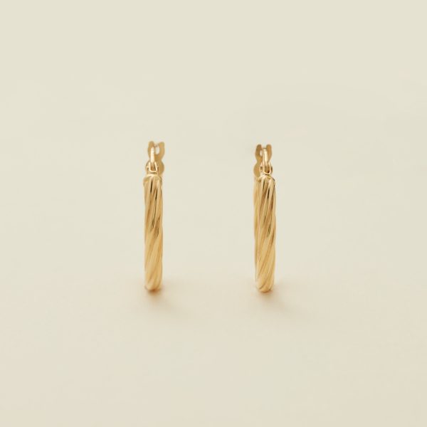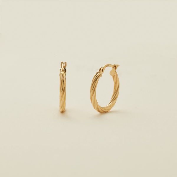 Go for the gold with the lightweight luxury of a classic pair of hoops. Featuring twisted texture and a hinge-style closure, this set of 14k solid gold earrings has that unmistakable shimmer for a finishing touch that you’ll reach for over and over again.
