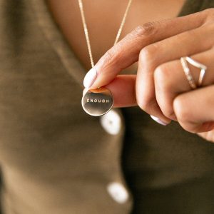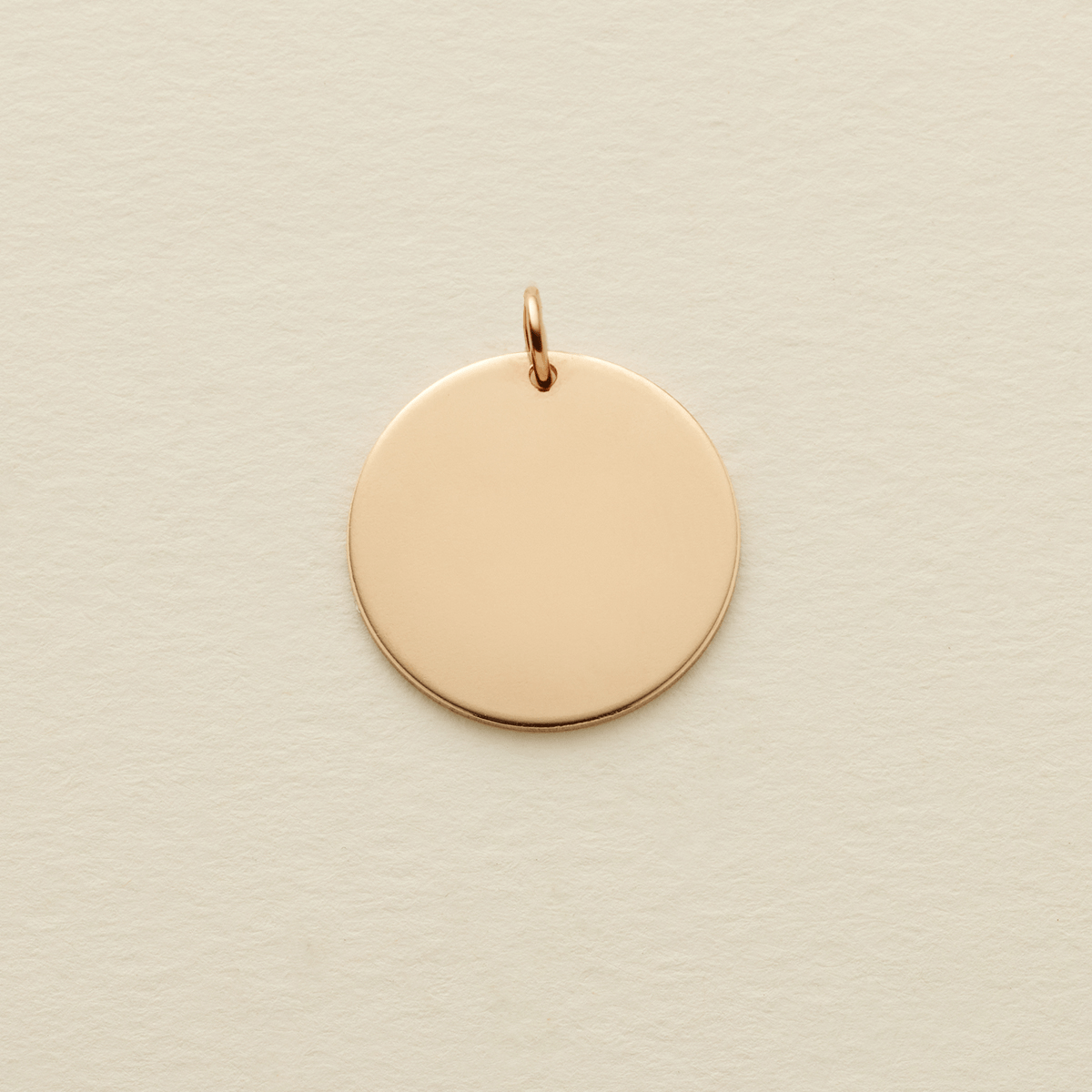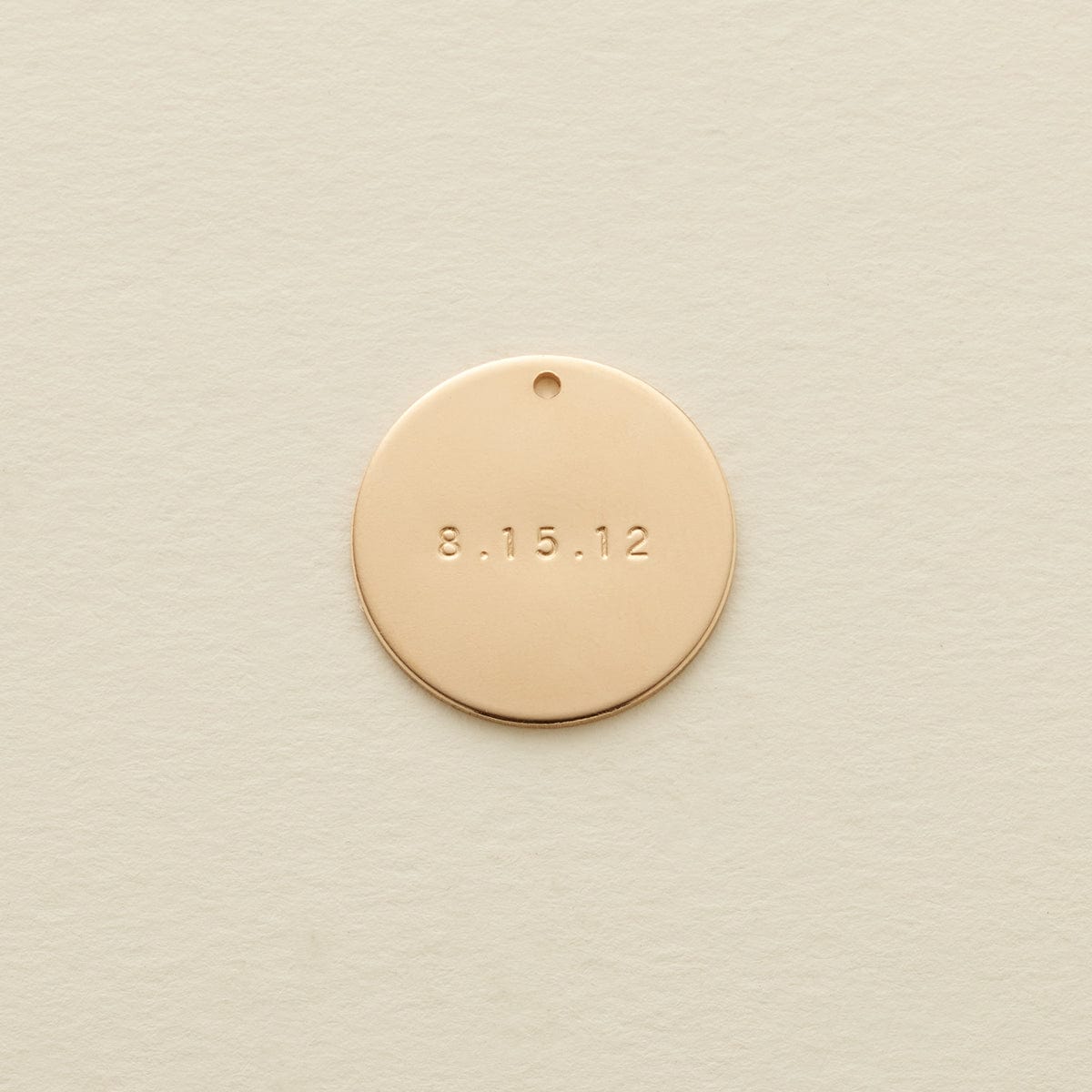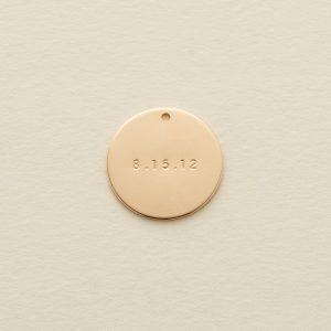 Find your motivation and get inspired with the ¾” Disc Pendant. Stamp up to 8 characters on this gold filled, rose gold filled, or sterling silver round disc with a word, name, or date that reminds you of what matters most. Held close to your heart, this necklace honors the beauty of your unique story.