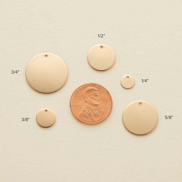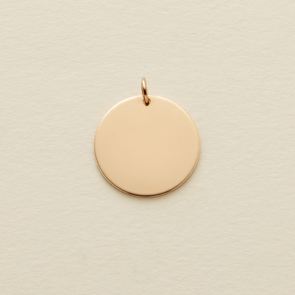 Find your motivation and get inspired with the ¾” Disc Pendant. Stamp up to 8 characters on this gold filled, rose gold filled, or sterling silver round disc with a word, name, or date that reminds you of what matters most. Held close to your heart, this necklace honors the beauty of your unique story.