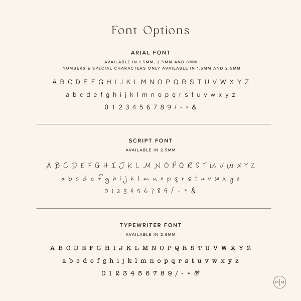 Have questions? Our customer care team can help you find the perfect font and add on size to match an existing piece. Email us at info and we can help you with your order!