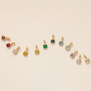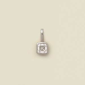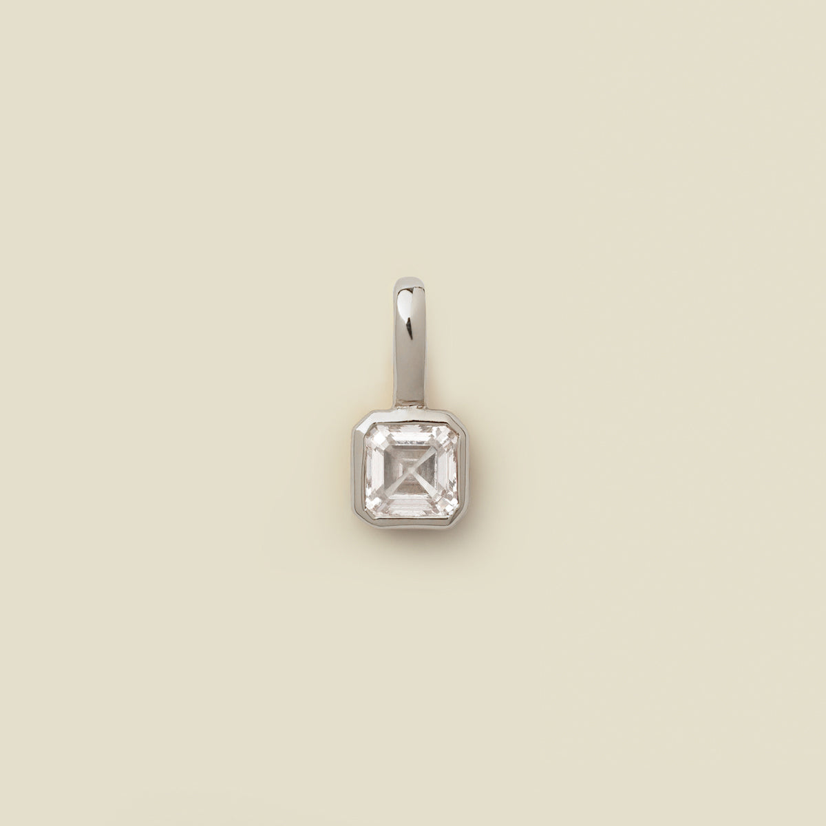 Add a boost of color and a little love to your charm collection with this Asscher cut diamond CZ, framed in gold vermeil. Featuring an open back for maximum light catching potential, the playful, art deco style of this April mini charm brings that perfect pop to your piece.