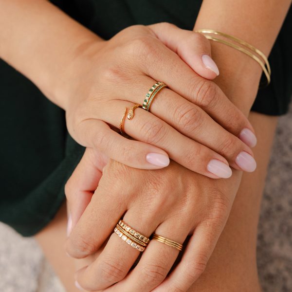 Featuring a full circle of Asscher cut CZs, the August Birthstone Eternity Ring makes it hip to be square. Comfortable and captivating, this one-of-a-kind band is a luminous reminder that when you elevate the everyday moments, the present becomes your greatest story.