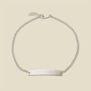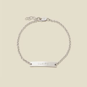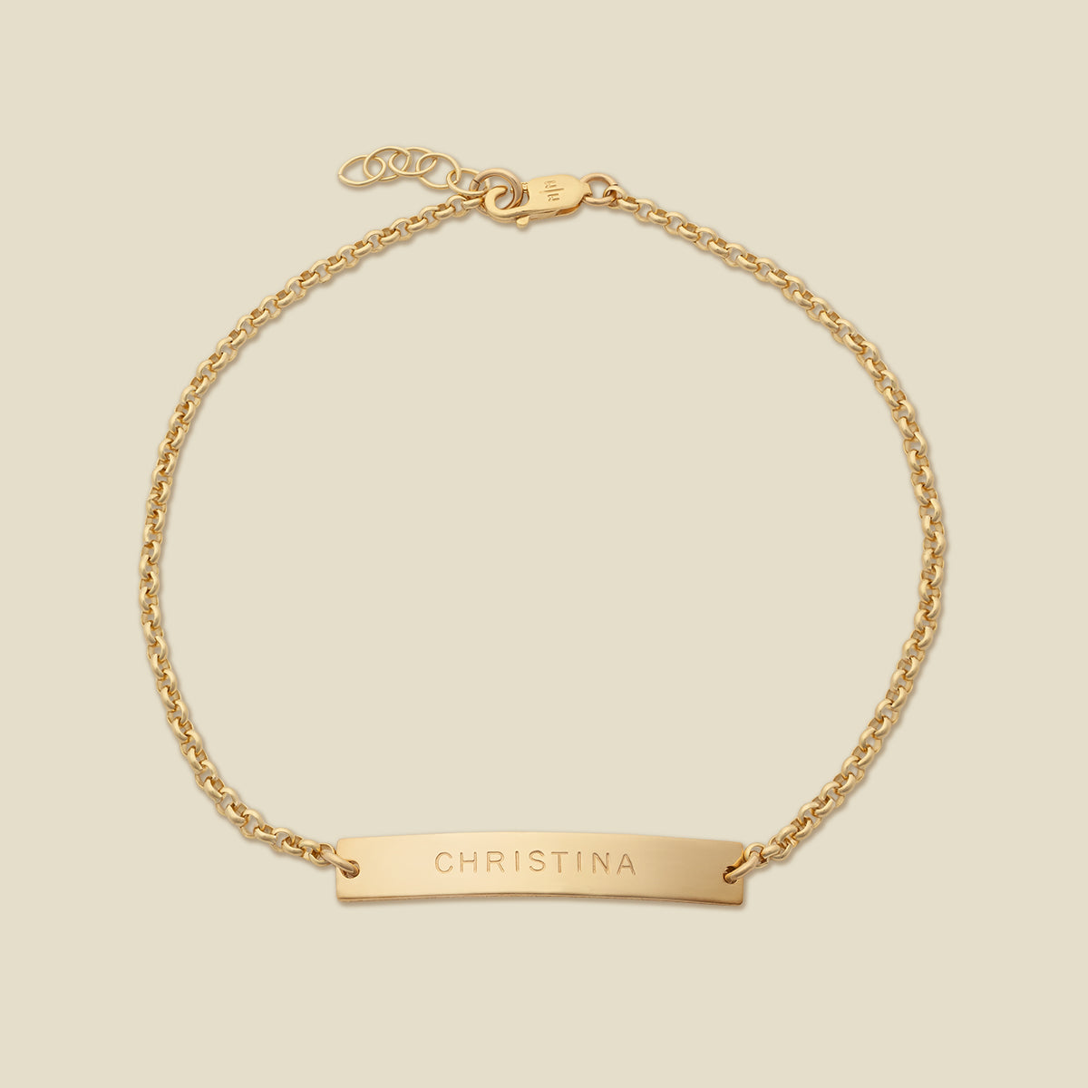 Minimal, modern, and masterfully made, our Horizontal Bar Bracelet really is the polished piece you’ve been craving. Each individual 1″ or 1.25” bar is hand-cut, filed, and finished with next-level craftsmanship. Make it your own with up to 9 characters, customized to your specifications and expertly stamped for a piece as uniquely stunning as you. The text for each bar slightly varies, the 1.0″ bar will be stamped with a centered placement and right-aligned on the 1.25″ bar.