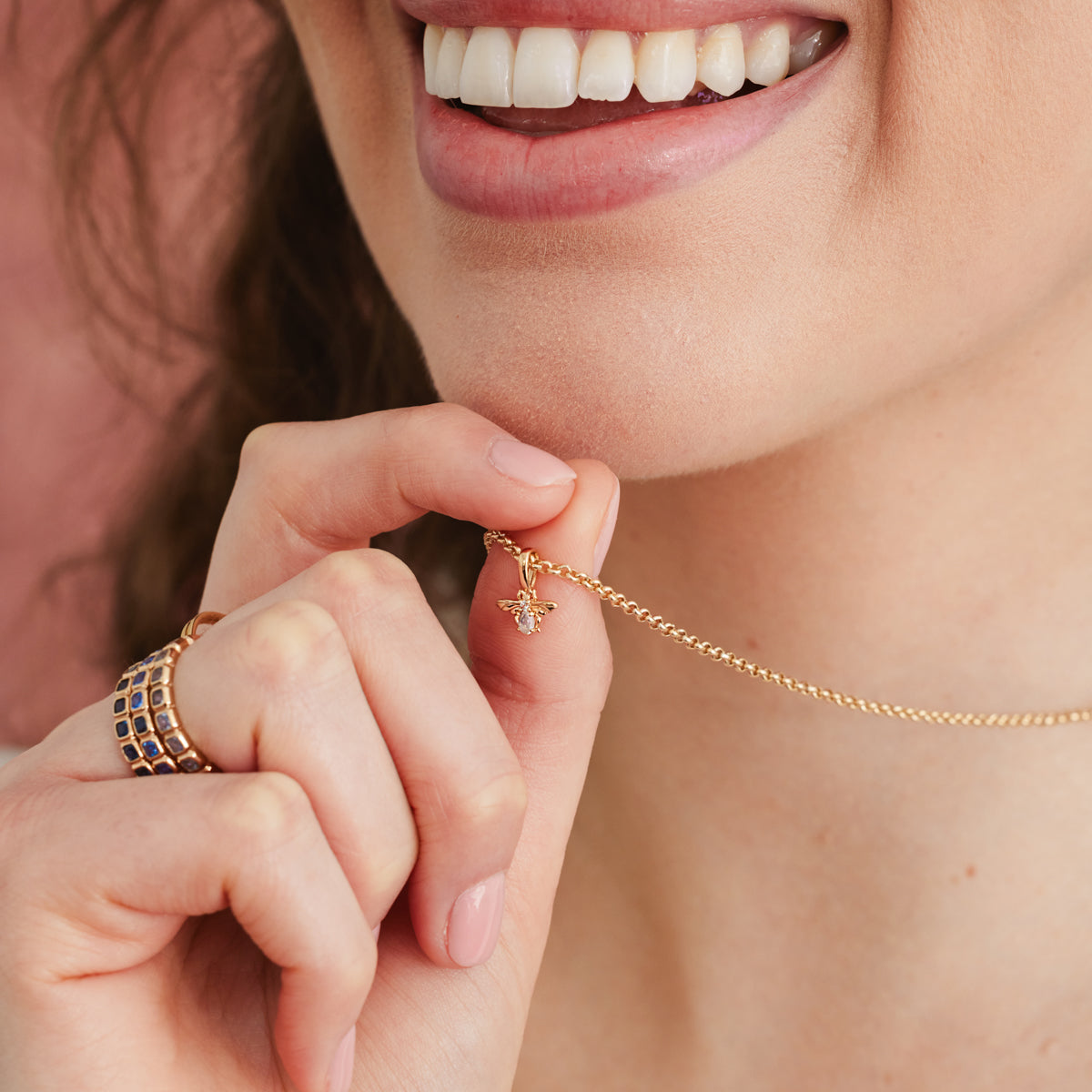 From the smallest connections to the strongest bonds, we are always stronger together. Featuring a luminous blue moonstone and a delicate CZ, this Bee Gemstone Charm reminds us to lift each other up—because the hive built on love is the one that thrives.