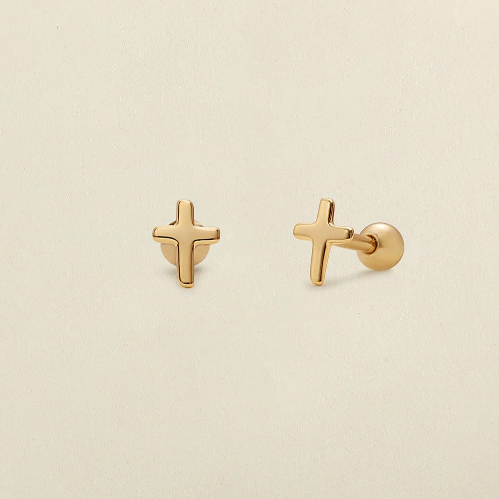These delicate cross earrings are a beautiful symbol of the faith you carry. Each lightweight stud features a shorter post length and a screw-on ball-style back for comfortable, long-term wear. Exchange the snags and pokes of traditional earring backs for a style that is cartilage and lobe friendly, headphone ready, and nap approved.