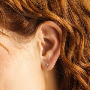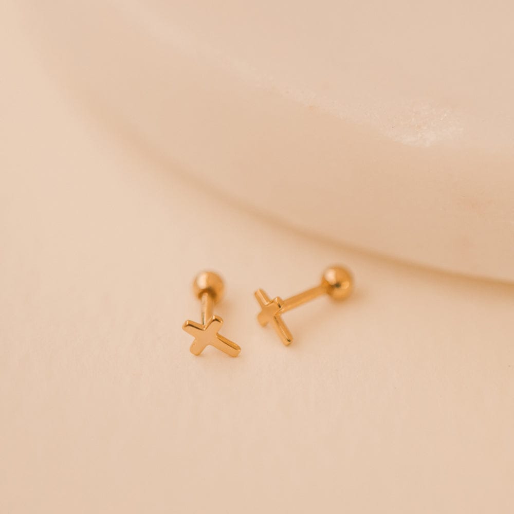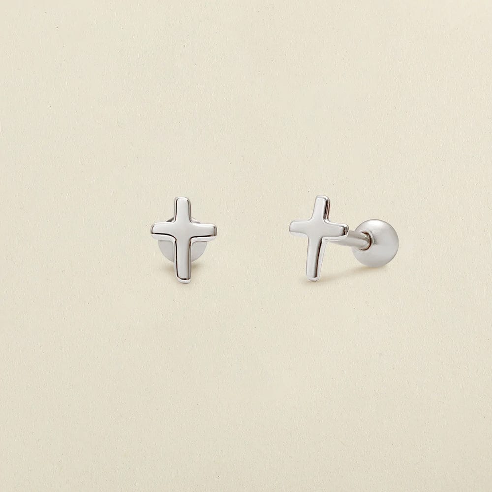 These delicate cross earrings are a beautiful symbol of the faith you carry. Each lightweight stud features a shorter post length and a screw-on ball-style back for comfortable, long-term wear. Exchange the snags and pokes of traditional earring backs for a style that is cartilage and lobe friendly, headphone ready, and nap approved.