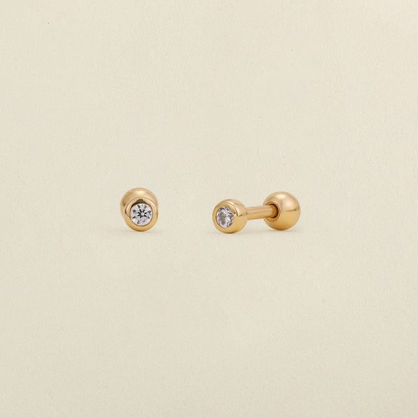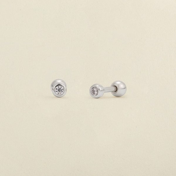 Comfortable and captivating, these sparkling CZ studs are bezel set and effortlessly timeless. Each lightweight stud features a shorter post length and a screw-on ball-style back for comfortable, long-term wear. Exchange the snags and pokes of traditional earring backs for a style that is cartilage and lobe friendly, headphone ready, and nap approved.