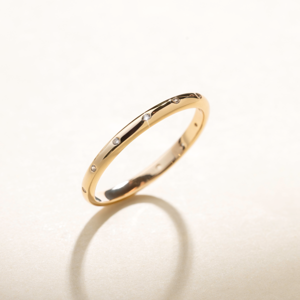 A dainty twist on our bestselling eternity style—this gold band is dotted with flush-set CZs all the way around, giving you a full sparkle moment. Stack it, style it, or let it shine solo—it’s a staple, all day, every day.