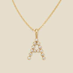 Playful texture and classic design come together in this uniquely personal necklace. Show off your signature shimmer with your choice of letters, each featuring bezel-set CZ poppies, on a classic gold chain for a personalized combo that is letter-ally perfect.