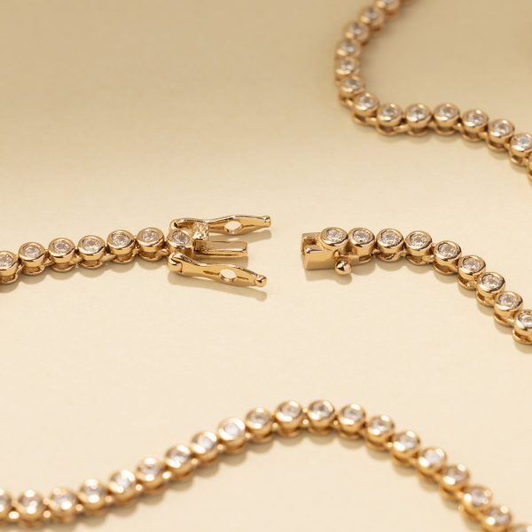 Serve up a statement in this luxurious, luminous layer. Featuring sparkling bezel-set CZs in a continuous line, each gold or silver chain has an open box clasp for an elevated finish. Claim the accessory advantage with a bold necklace that is party perfected- and just as irresistible with jeans and a tee.