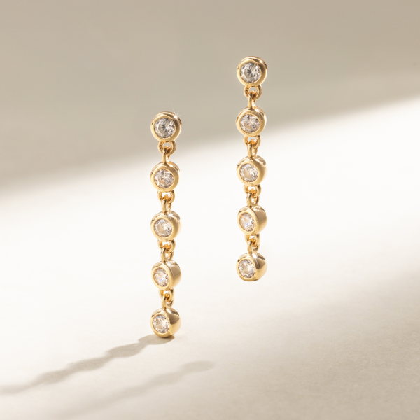 These dangly earrings bring just the right amount of drama—featuring a gleaming row of CZ poppies for that “yes, I made an effort” look (without actually trying too hard). Lightweight and luminous, they’re a go-to for dressing up or winding down.