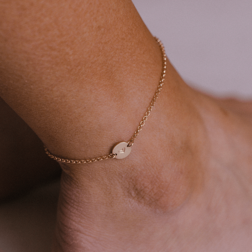 Calling all wanderlusts! A classic chain that carries all the charm of a summery scene, the Disc Anklet offers a way to take a little piece of your story along on all your adventures. Personalize the ⅜” disc with an initial or symbol, and you’re officially ready to step out in the sunny season’s best style.