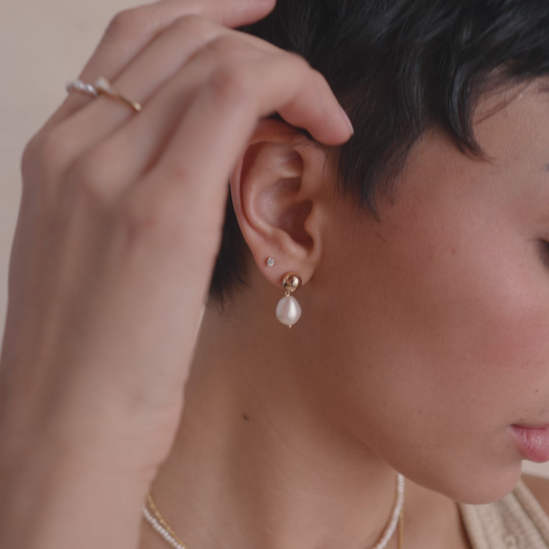Graceful by design, these earrings feature a warm gold sphere paired with a luminous pearl drop. Worn solo or styled with the Pearl Charm or Baroque Pearl, they add a soft shimmer to any look.