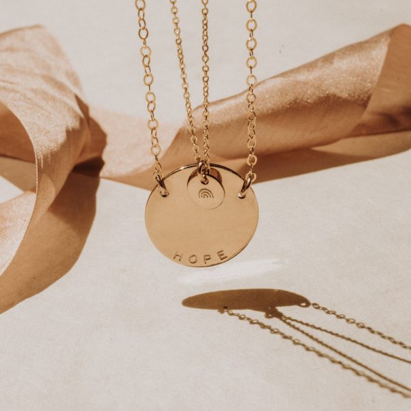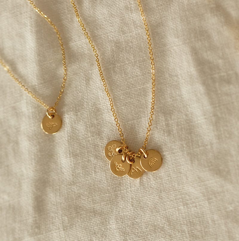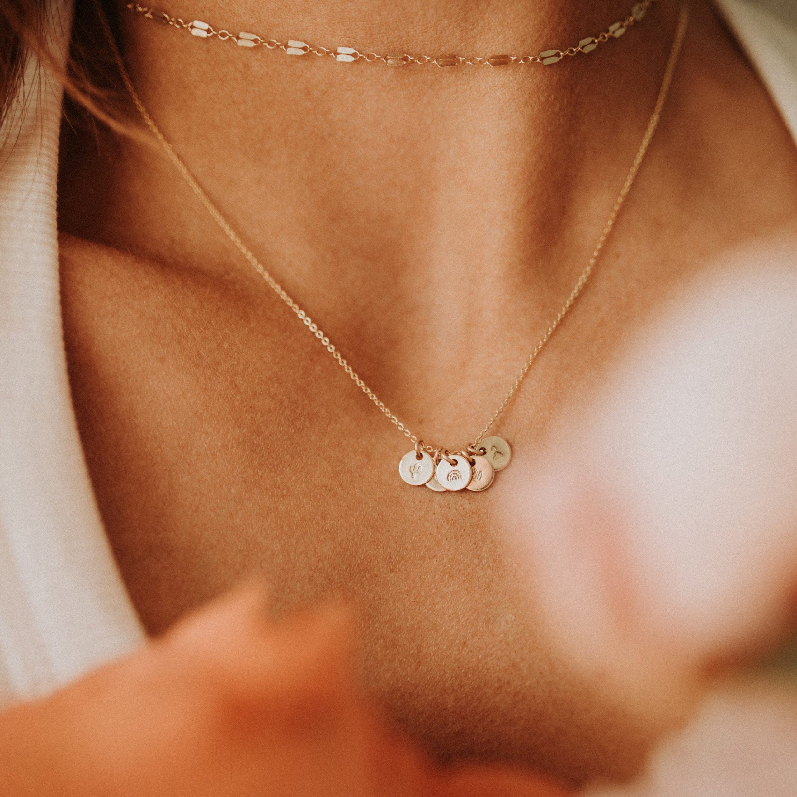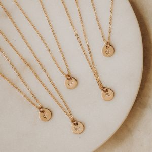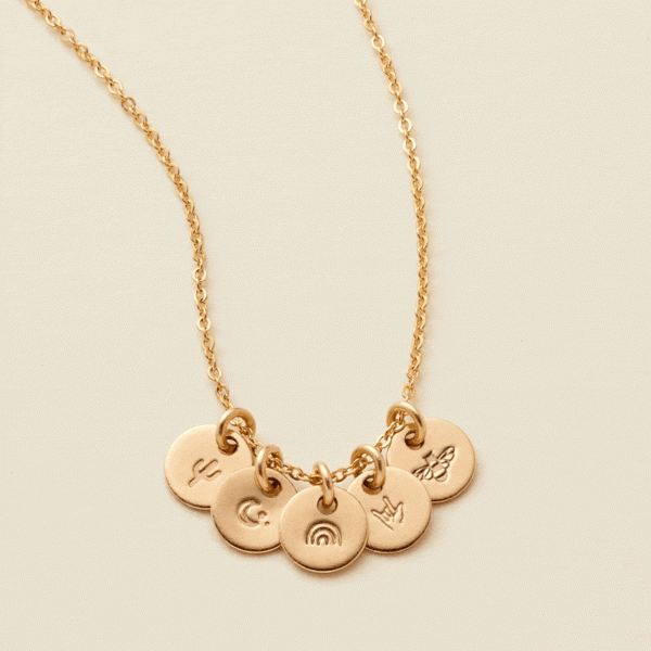 “The small things of life were often so much bigger than the great things.” The Evie is our tiniest pendant{s} stacked with up to 5 discs, handstamped with one tiny arial letter, symbol, or birth flower. Symbols were chosen and designed with the help of our amazing customers!
