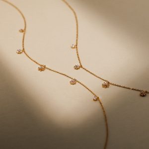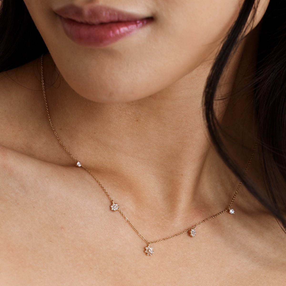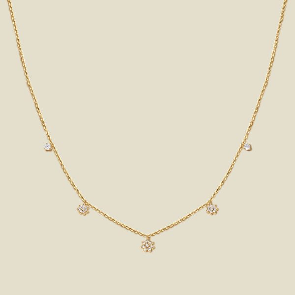 Cultivate a legacy that lasts with a shimmery string of blossoms, each set in the dainty chain of this classic necklace. Three pave-style flowers and 2 prong-set round CZs pay tribute to the garden of community and connection that foster the flowers of tomorrow.