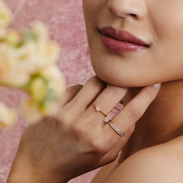 Plant with purpose and take in the irresistible luster of a solitary bloom. A delicate band holds a pave-style CZ daisy for a stackable celebration of spring, sunshine, and the sweetness of the simple and profoundly beautiful moments that take your breath away.