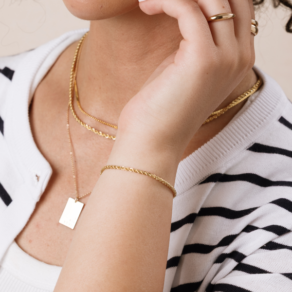 Turn your stack into a statement. With its chunky texture and timeless shape, this bracelet brings warmth and weight to your everyday look– equal parts bold and effortless.