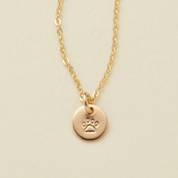 Our tiniest 1/4″ pendant is hand stamped with our “paw print” stamp. Perfect for those who are pet parents to dogs, cats, or other critters.