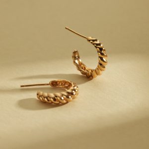 Shine your inner confidence with these distinctive hoop earrings made for everyday wear. The twisted shape, lightweight feel, and delicate curves stack effortlessly with other minimalist hoops or studs. These are just the right balance of bold and refined.