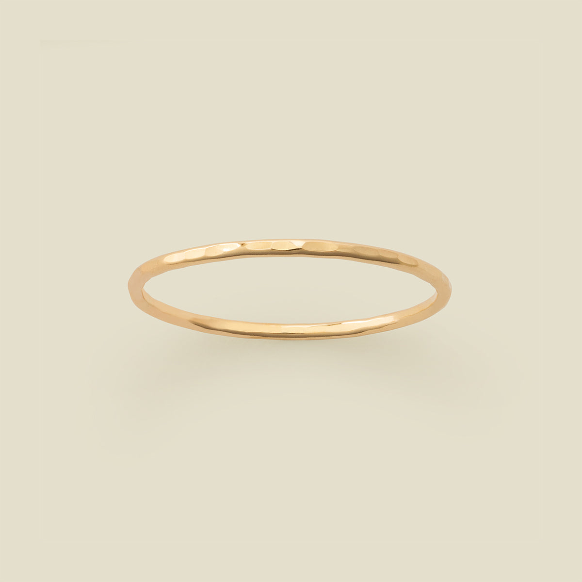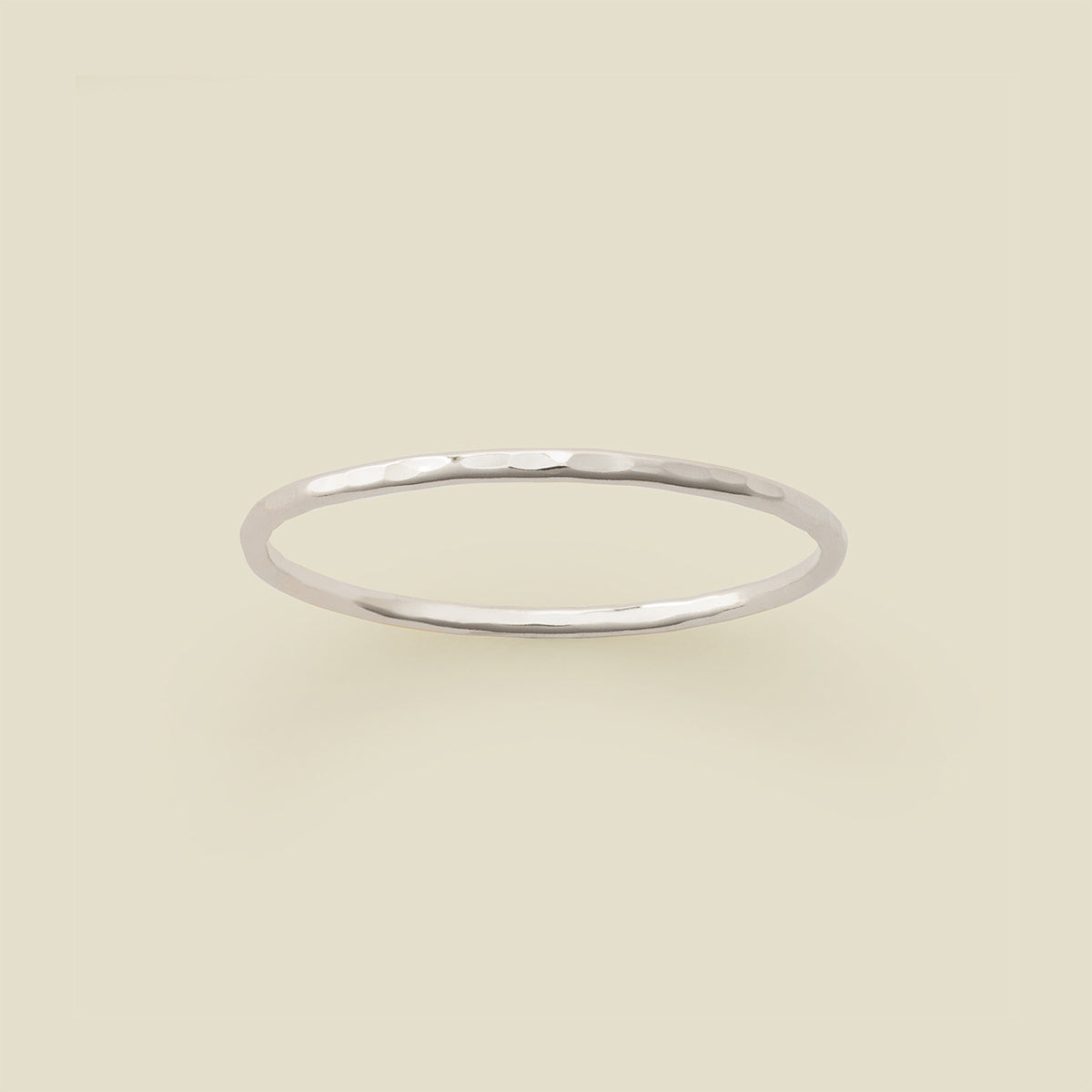 Catch the light and infuse it into your every moment with the Hammered Stacking Ring. This one-of-a-kind petite band features the unique texture of individual hammer strokes that make your ring as uniquely beautiful as you.