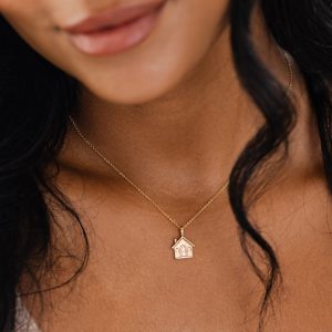 Home is where the happy is. This charming, cozy house, featuring a tiny door and windows, lets you carry a reminder with you that your home isn’t just a place— it’s a feeling. No matter where you go, the love of family builds a house that will always be full.