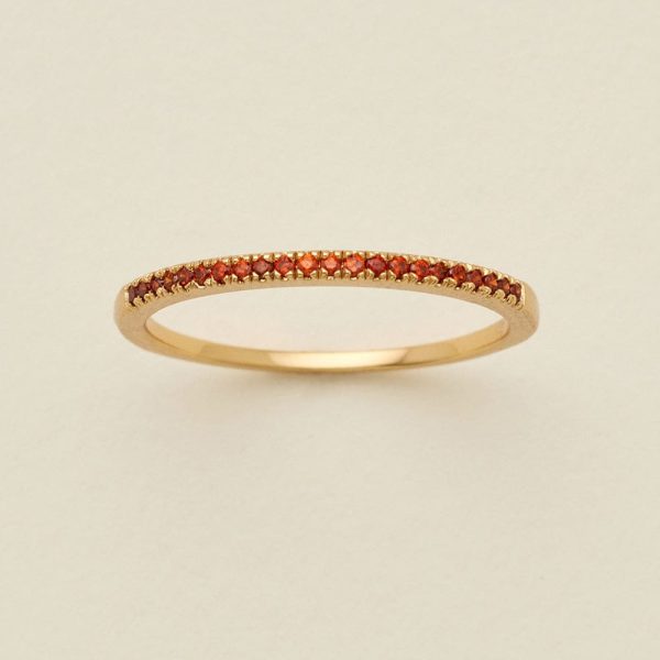 Every story is worth telling, and yours is bound to be a bestseller. The January Birthstone Stacking Band features prong-set garnet CZ along half of the ring symbolizing loyalty, with smooth and luminous gold vermeil bringing your story full circle. With endlessly unique stacking potential, this ring has all the makings of a classic masterpiece.
