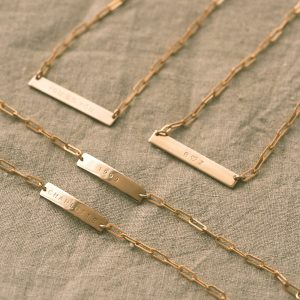 Casual chic meets customized class with this newly designed pairing of our customer favorite Jude chain with a skinny bar that is hand cut and stamped with a meaningful name, word, or date, then filed and finished by our in-house artisans. Connect to a whole world of possibility when you link your story to this statement paperclip chain bracelet.