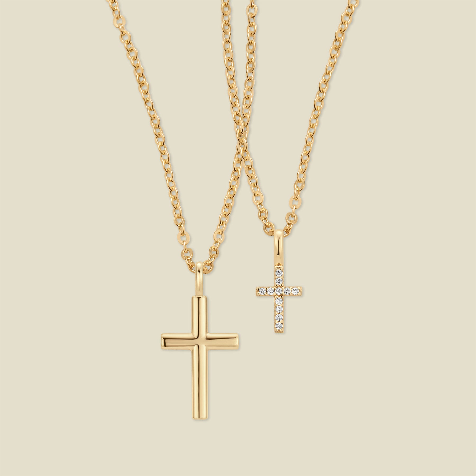 The Kaley Cross Set brings together the sculptural shape of the Rounded Cross and the radiant sparkle of the Mini CZ Cross. Created together with Kaley as a meaningful expression of what matters most, this duo balances bold and delicate— made to layer or share with someone who brings you strength.