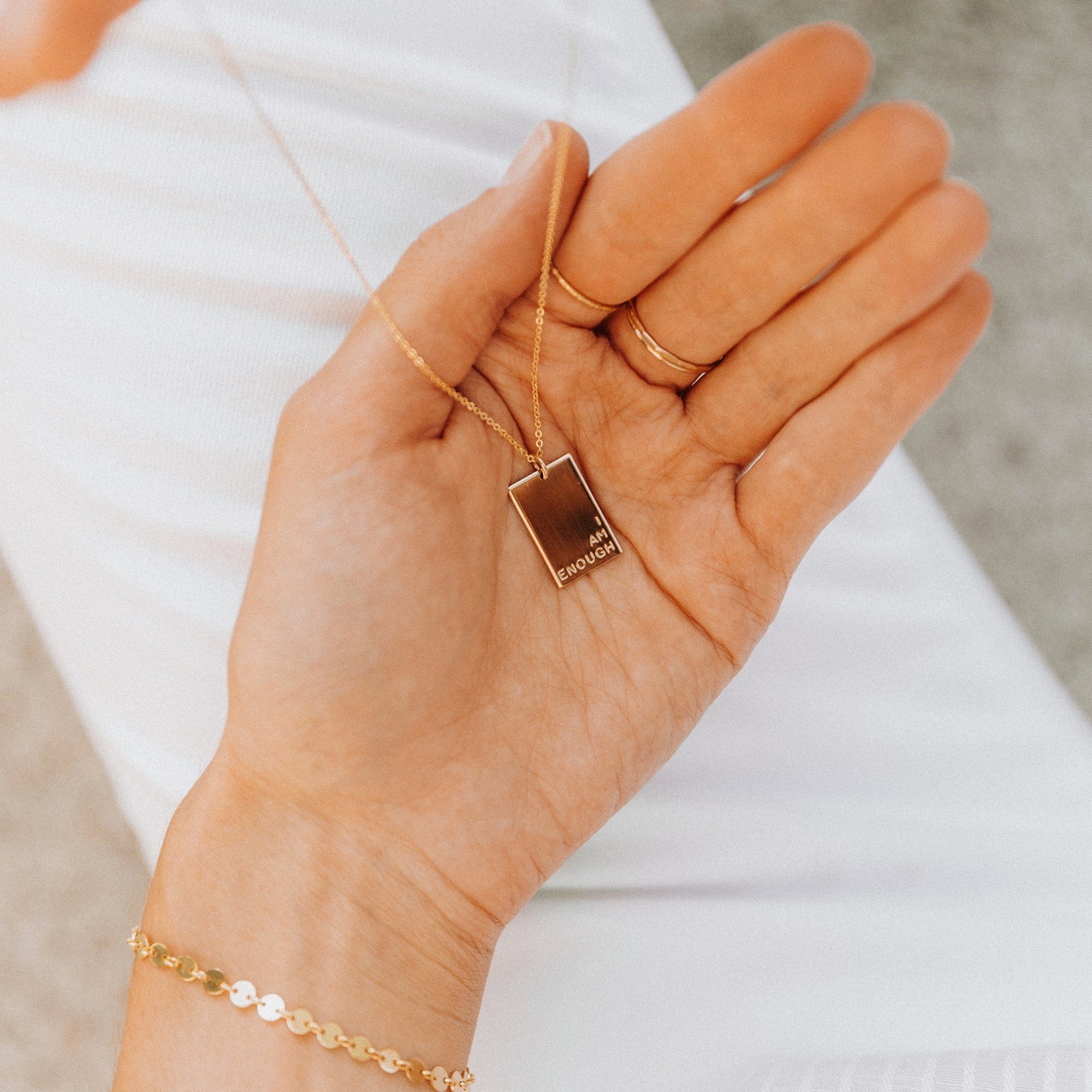 Keep your dreams close, your loved ones over your heart, or some words of affirmation top of mind with this unique handmade piece. The Lennon can fit up to 3 lines of text and up to 6 characters on each line.