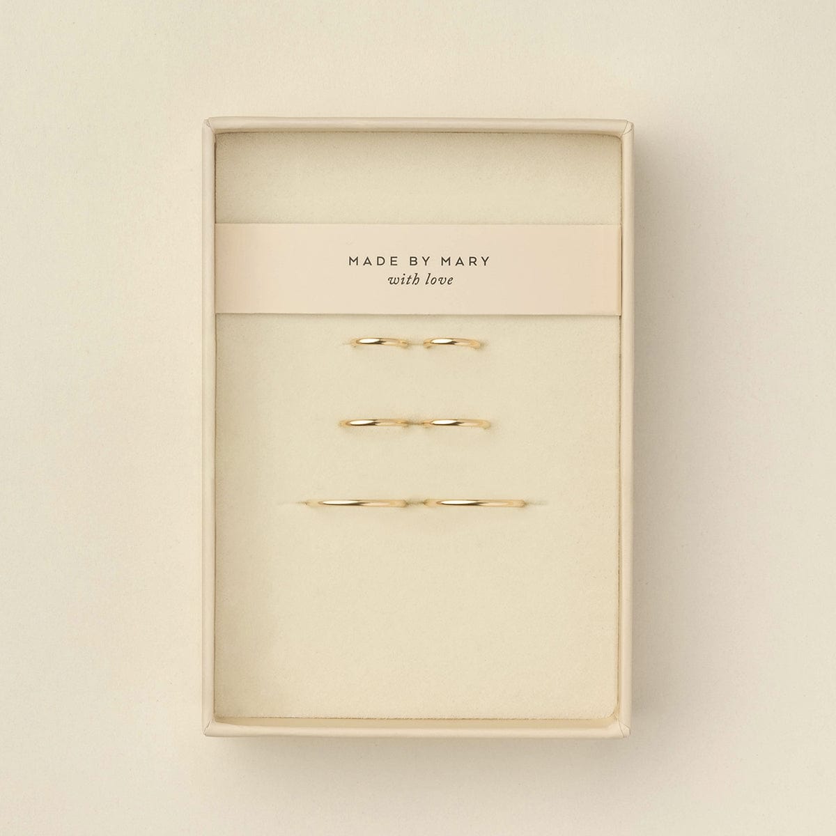 Fix ‘em and forget ‘em– because these ultra versatile sets are made for long-term wear. This lightweight combination features one pair of each 9mm, 12mm, and 16mm Live In Hoops.Exchange the snags and pokes of traditional earring backs for curated style that is cartilage and lobe friendly, headphone ready, and nap approved.