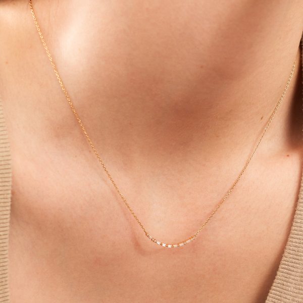 You’re the spark that ignites my soul. Show your love for the one who lights up your life with this crescent necklace. Arranged with baguette and gem CZs as Morse Code dots and dashes that spell out L-O-M-L (love of my life), this piece is a subtle yet profound way to share the message of your heart.
