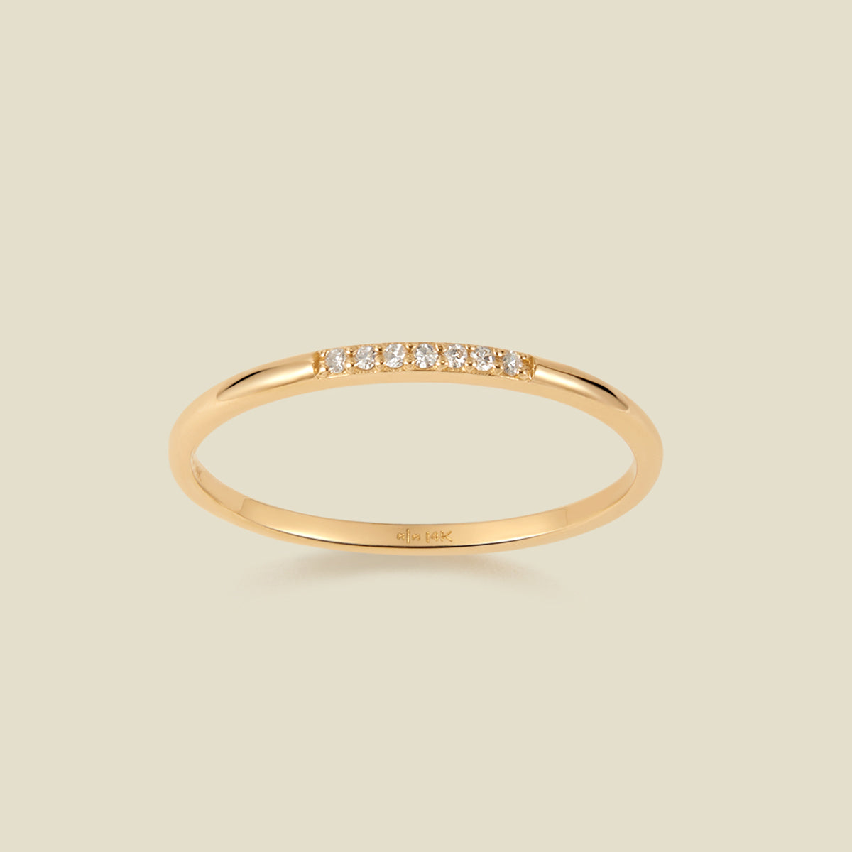 Reflect the allure of a shimmering night sky with the Luna Diamond Ring. Featuring seven single cut round diamonds in a sparkly line, this petite 14k solid gold band brings a little indulgence to your everyday style. Stacked with other pieces for a luminous layer or worn solo to achieve a timeless shine, this ring puts a touch of pure magic in your moments.