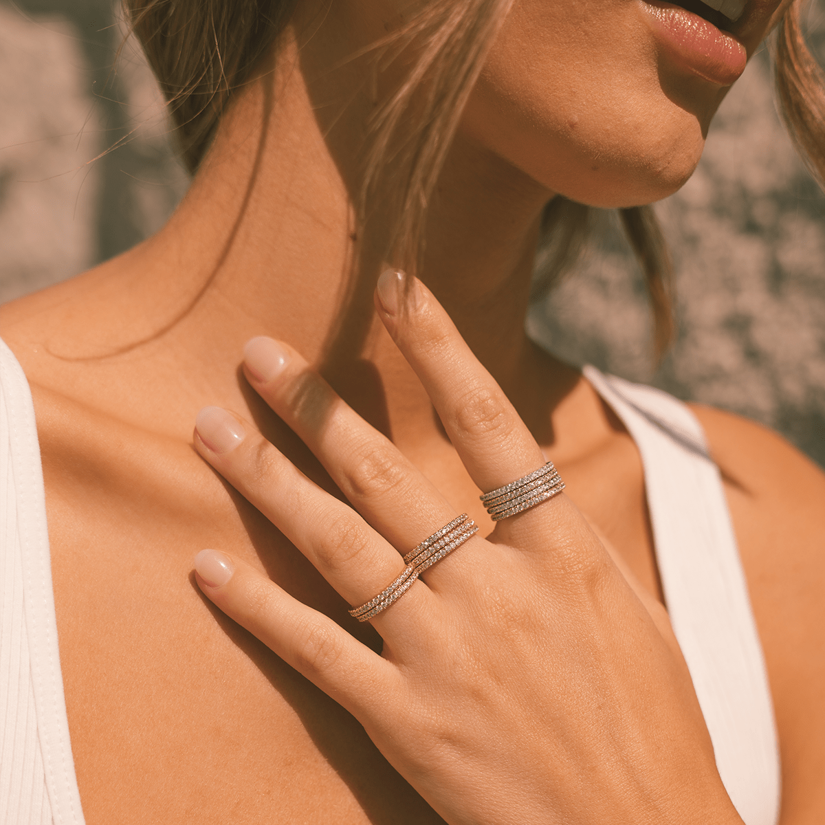 Add a little stardust to your story with the shimmering Luxe Stacking Band. Inlaid with CZ, this gold vermeil or sterling silver ring is ultra layerable and completely unforgettable. Pretty and petite, this piece makes a beautiful wedding band, special occasion gift, or everyday staple.