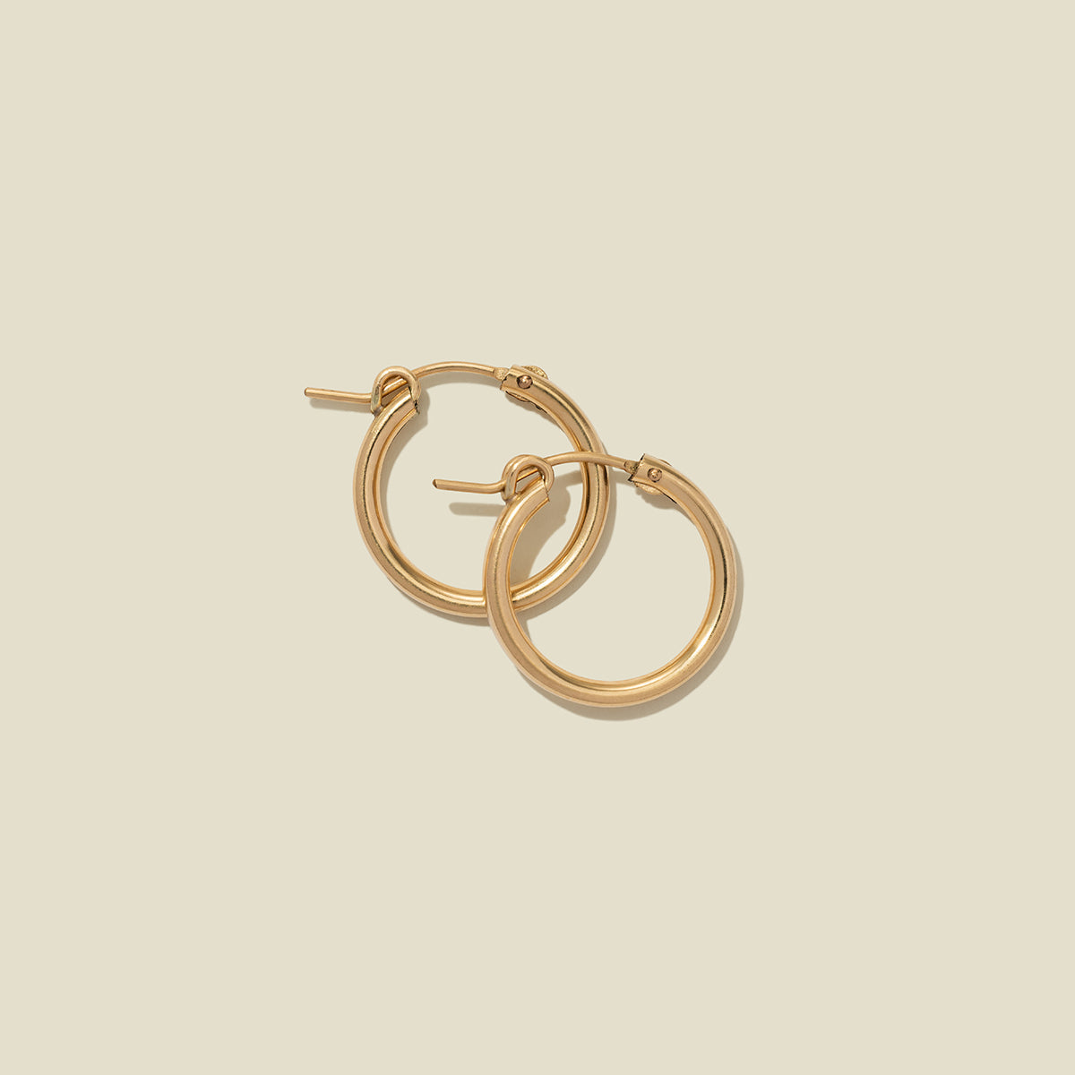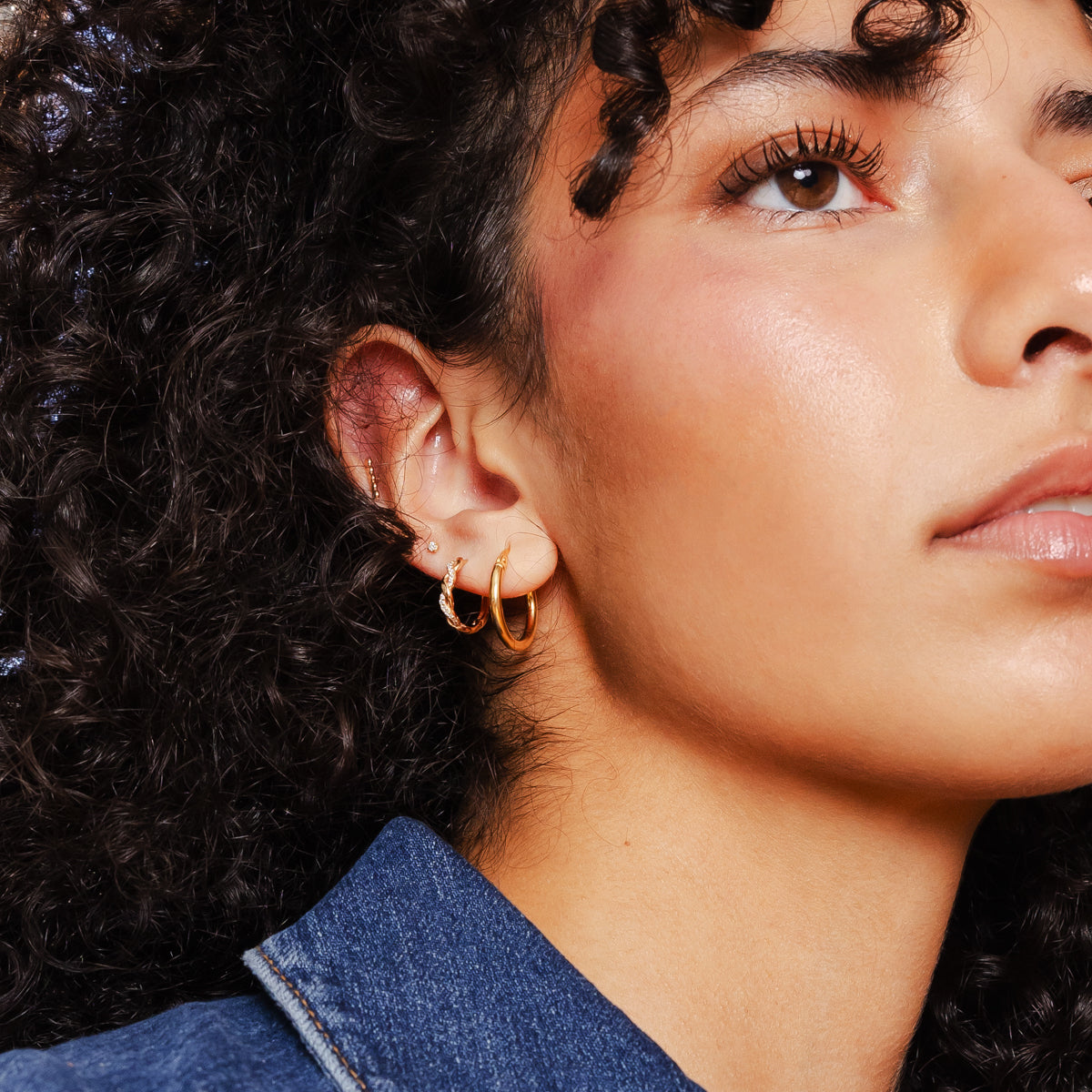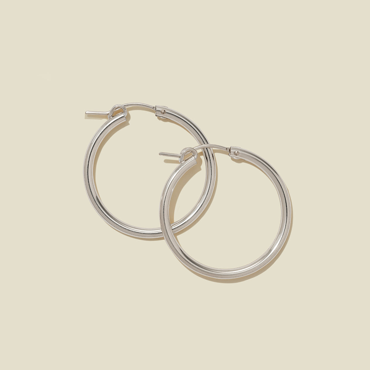 Your search for the perfect staple hoop ends here. These midi hoop earrings feature a hinge-style closure for easy breezy style. Bold enough to make a statement but minimal enough for everyday wear, these lightweight lovelies are available in 3 sizes and are the ideal pairing for one of our hooplets.