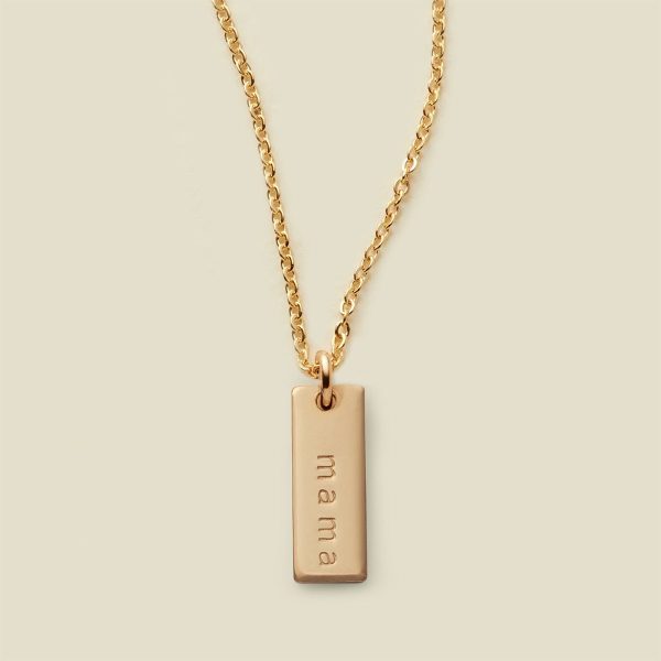 Add a timeless touch to your own trademark style with the Mini Bar Necklace. This mini .5” vertical bar can be hand-stamped with up to 4 characters for a uniquely personalized accessory. From big milestones to little moments, this fun-sized pendant is your freshest accessory of the season.