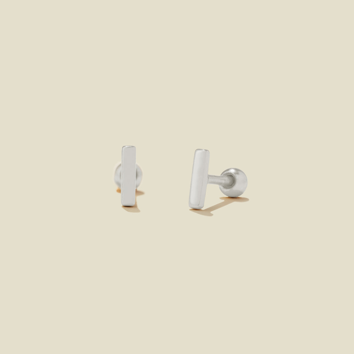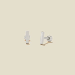 Featuring a flawlessly polished finish, these mini bar earrings add a tiny pop of shine that shows off your signature style. Each lightweight stud features a shorter post length and a screw-on ball-style back for comfortable, long-term wear. Exchange the snags and pokes of traditional earring backs for a style that is cartilage and lobe friendly, headphone ready, and nap approved.