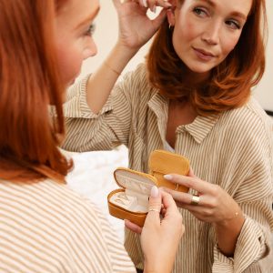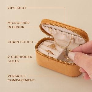 Stay accessorized on the go with the Mini Jewelry Case. Keep this tiny zippered container in your gym bag, purse, backpack, or car for a quick style refresh and securely store your jewelry while you’re doing your thing. Featuring a microfiber interior with 2 cushioned slots, 1 small pouch, and a versatile compartment, this busy day bestie means your favorite pieces are always within reach.