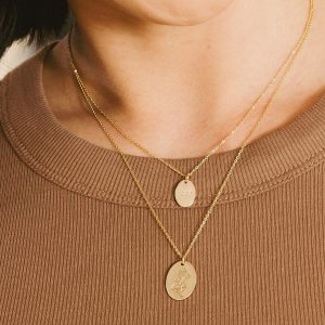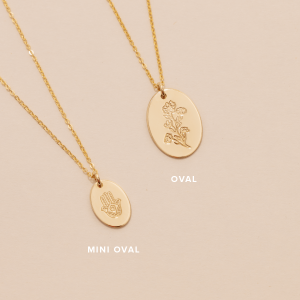From puppies to yellow polka dot bikinis, some things are just better when they’re mini– and our classic Oval Necklace just got a tiny twin. Available in gold filled, rose gold filled, or sterling silver, this .5”x.35” petite oval pendant can be personalized with a symbol, or up to two rows of 4 characters. From big adventures to little moments, carry it all in this travel-sized treasure.