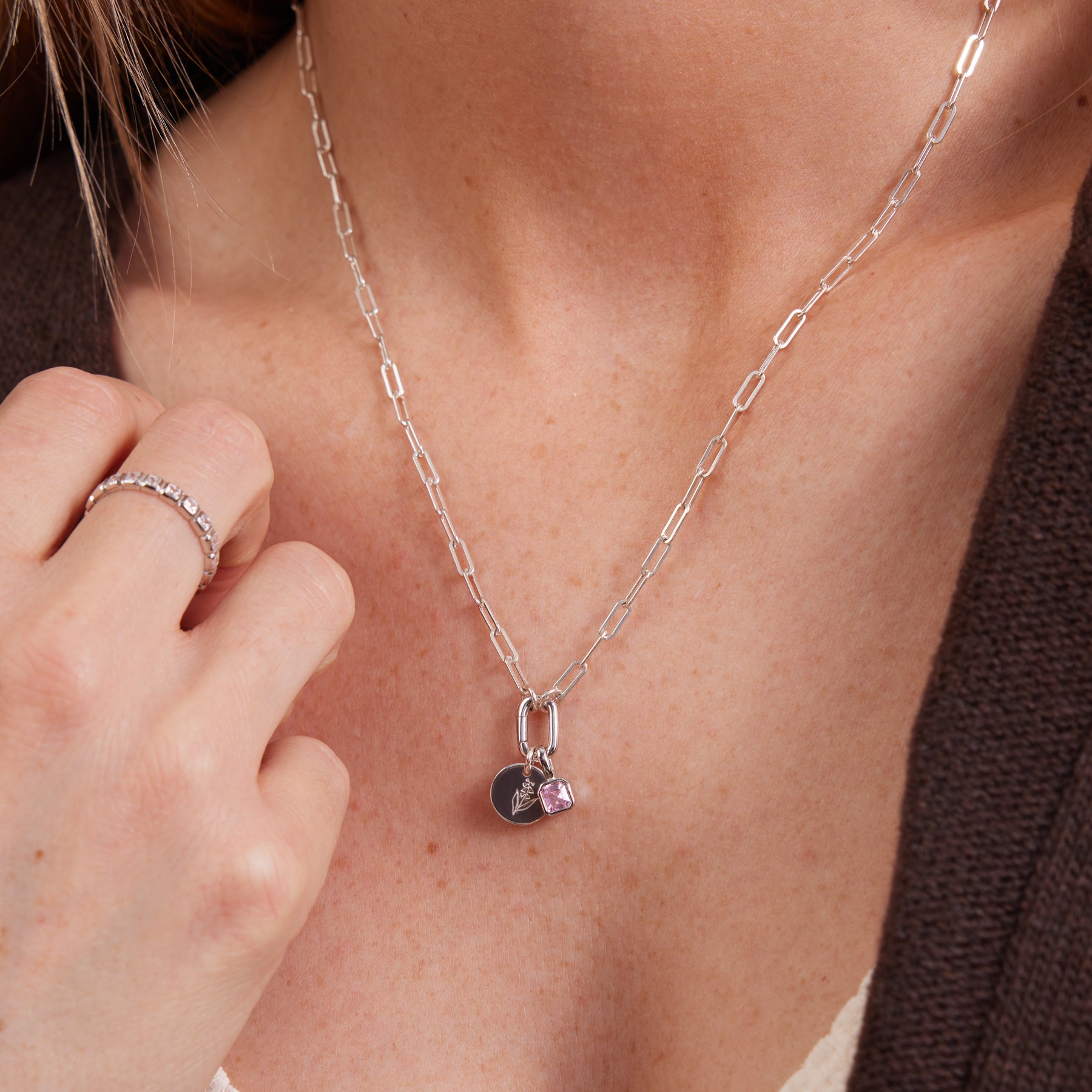 A bold little link for your most charming adventures, this paperclip-style mini link lock is always ready to take on the day. Simply pop open the hinge, add just a few charms, slide each end of your chain on, and click to secure.