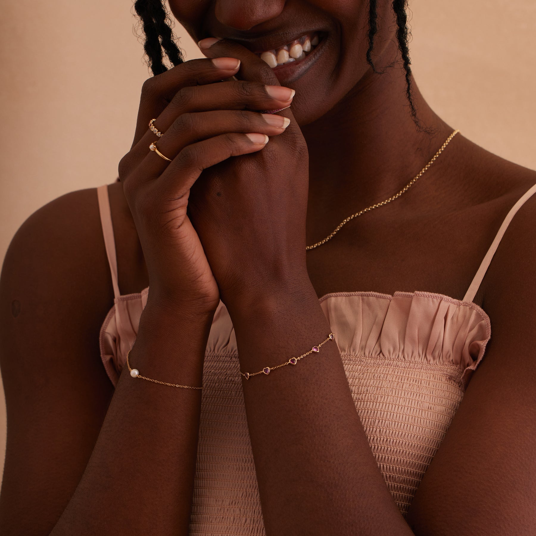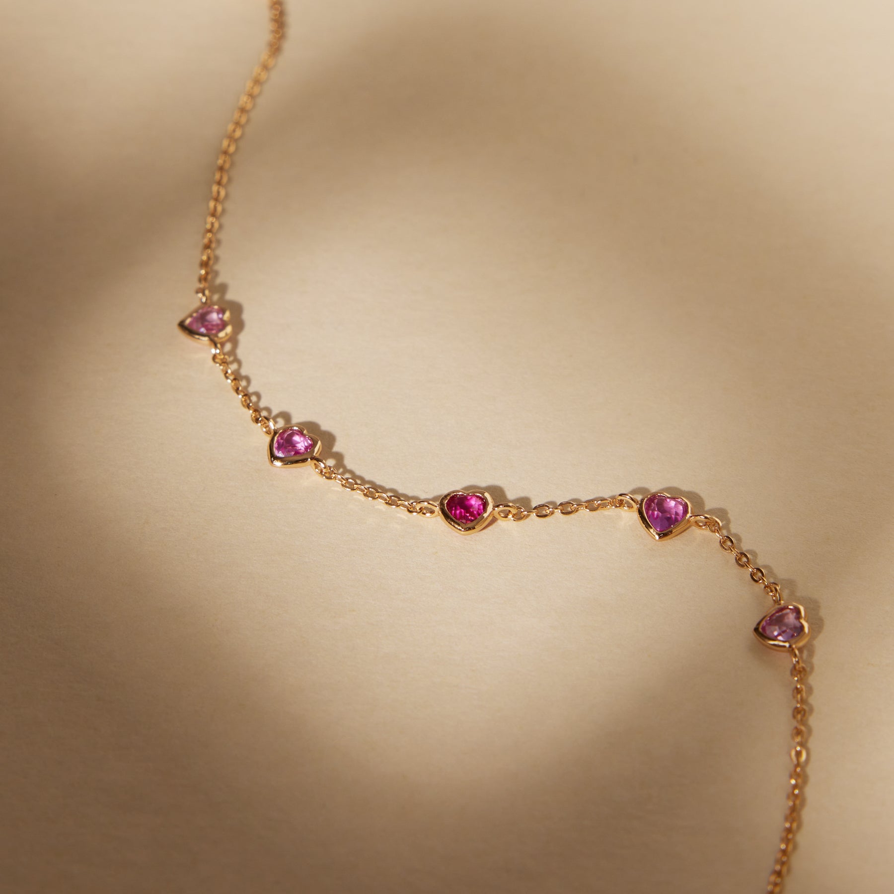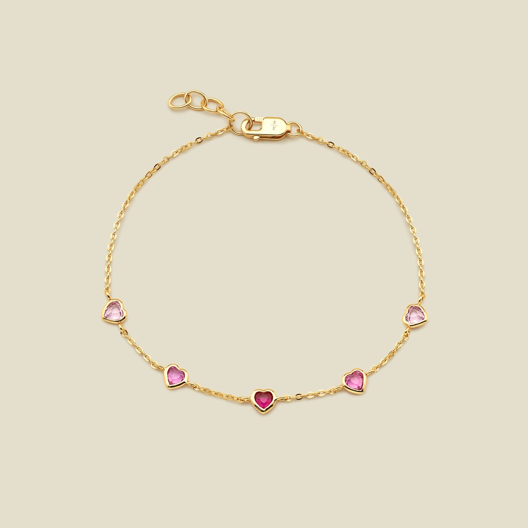 You’ve got a heart of gold; wear it on your sleeve with a bracelet made to bring out your sweet side. Floating CZ hearts in graduating shades of pink create a subtle ombre effect and bring a little sugar to spice up your everyday essentials.
