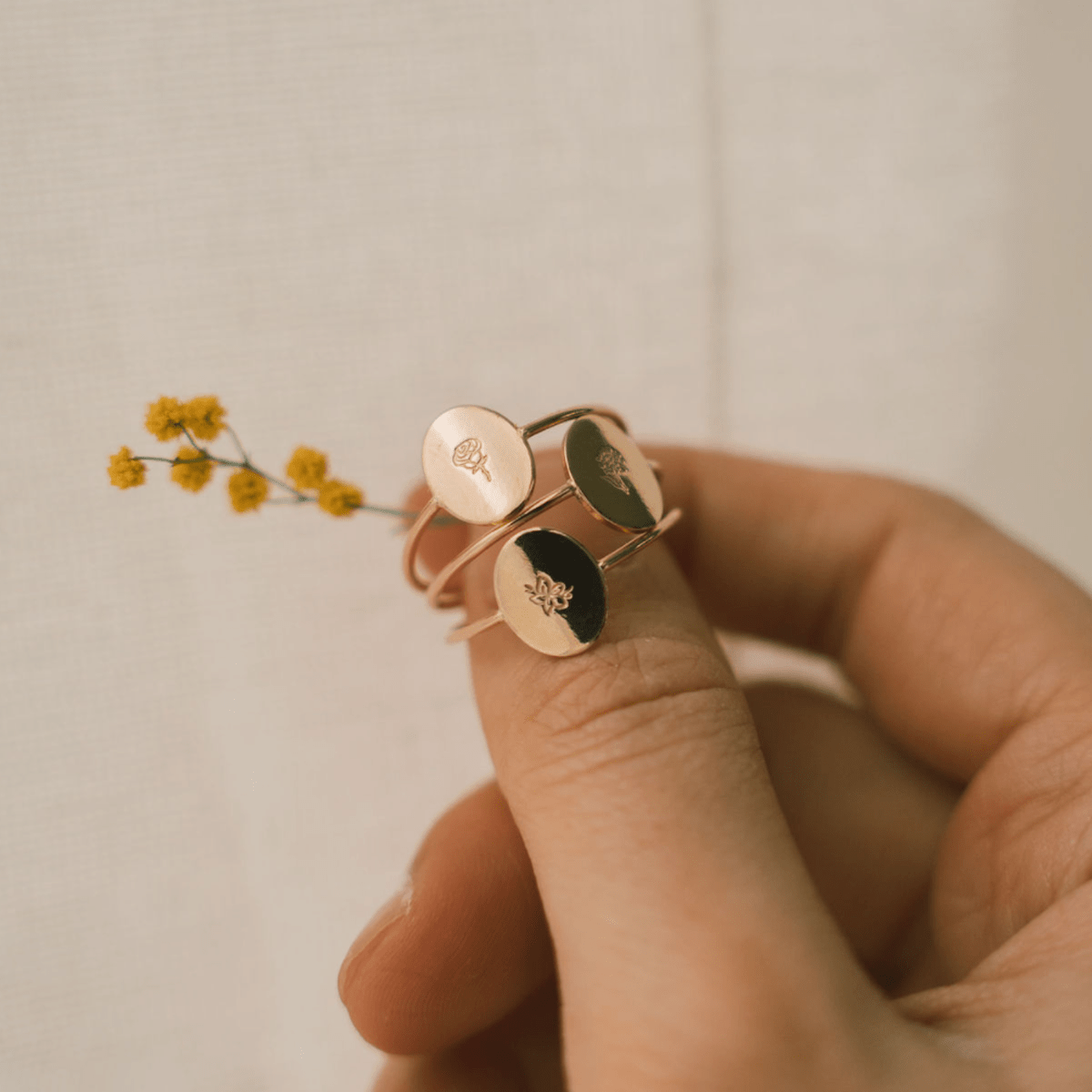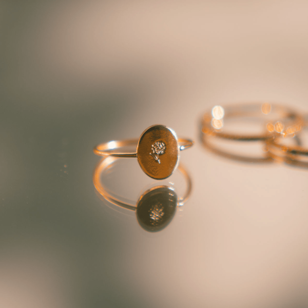 Oval Customized Ring – Initial or Birth Flower