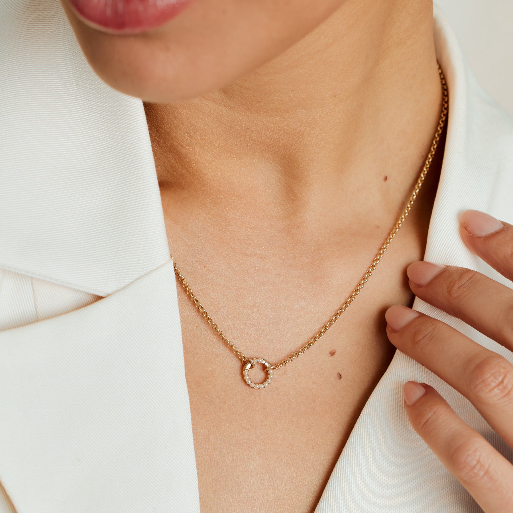 A simple circle of pearls with endless styling potential. Pop open the hinge to add charms or layer chains—then click to lock in your look.