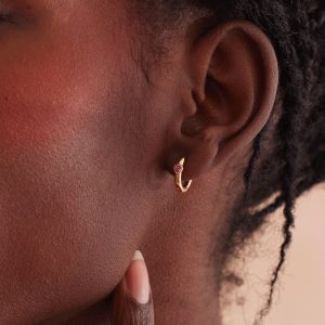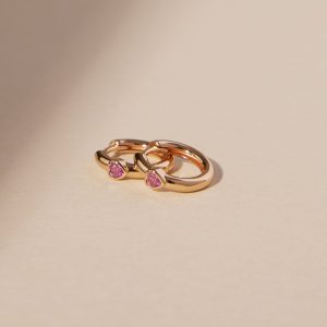 Show off the shape of your heart with the dreamy harmony of pink CZ hearts set in gold huggie hoops with a hinge-style closure. This luminous pair gives a classic style a splash of understated romance that is simply timeless.