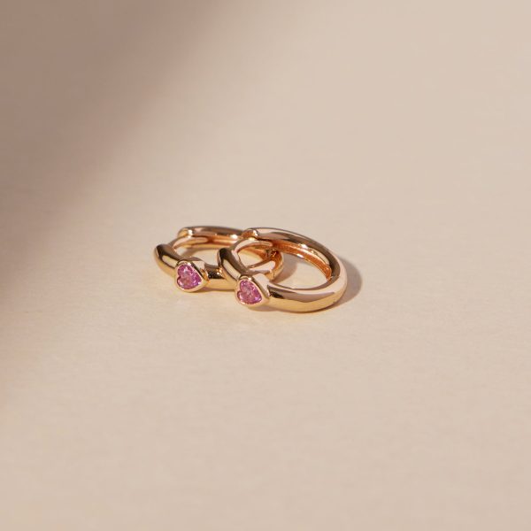 Show off the shape of your heart with the dreamy harmony of pink CZ hearts set in gold huggie hoops with a hinge-style closure. This luminous pair gives a classic style a splash of understated romance that is simply timeless.
