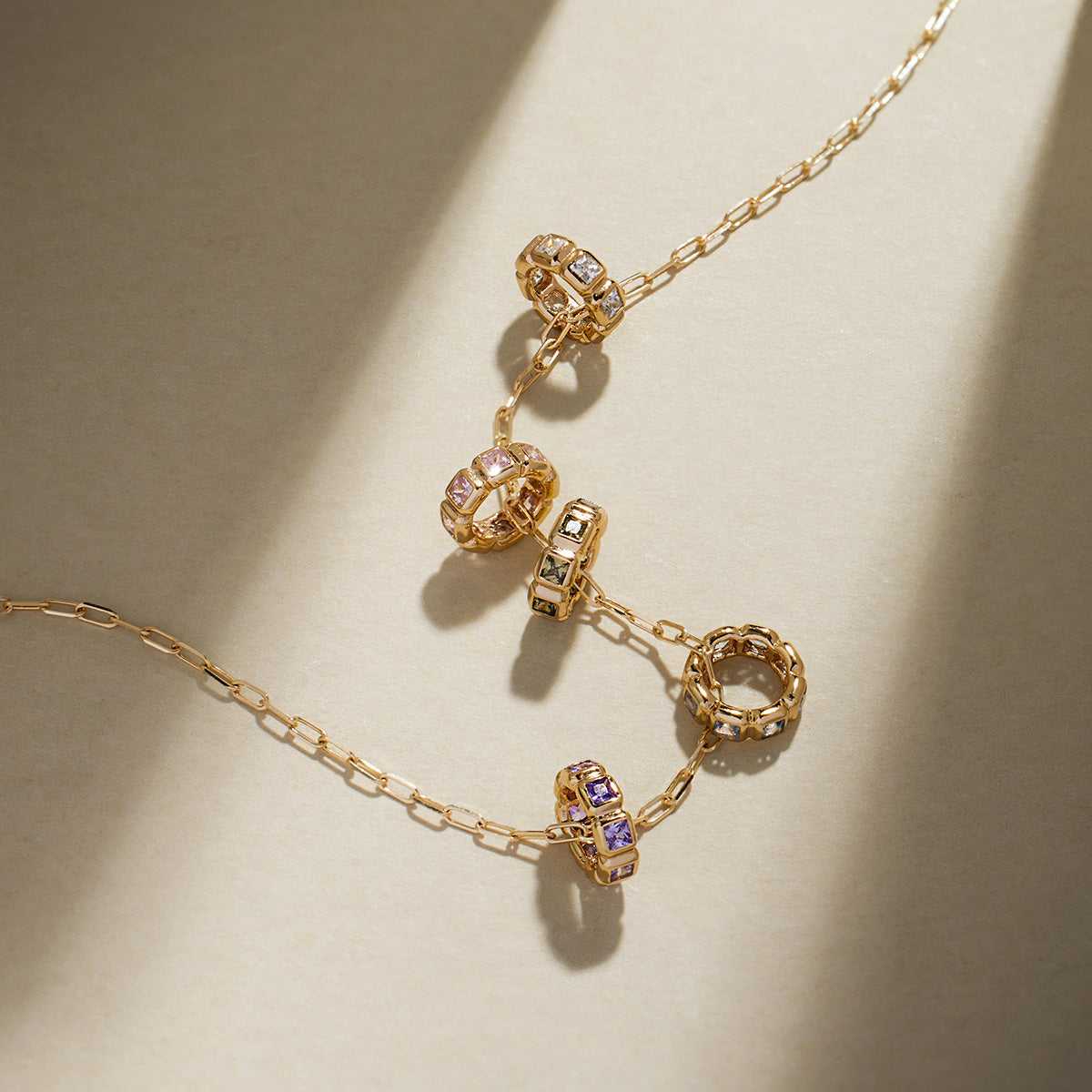 A symbol of glow, this petite blue sapphire charm features Asscher cut CZs in a modern bezel, proving that small things can hold big meaning. Thoughtfully designed for effortless layering, its low-profile shape offers space to stack more of what matters- capturing each moment, memory, or milestone along the way.