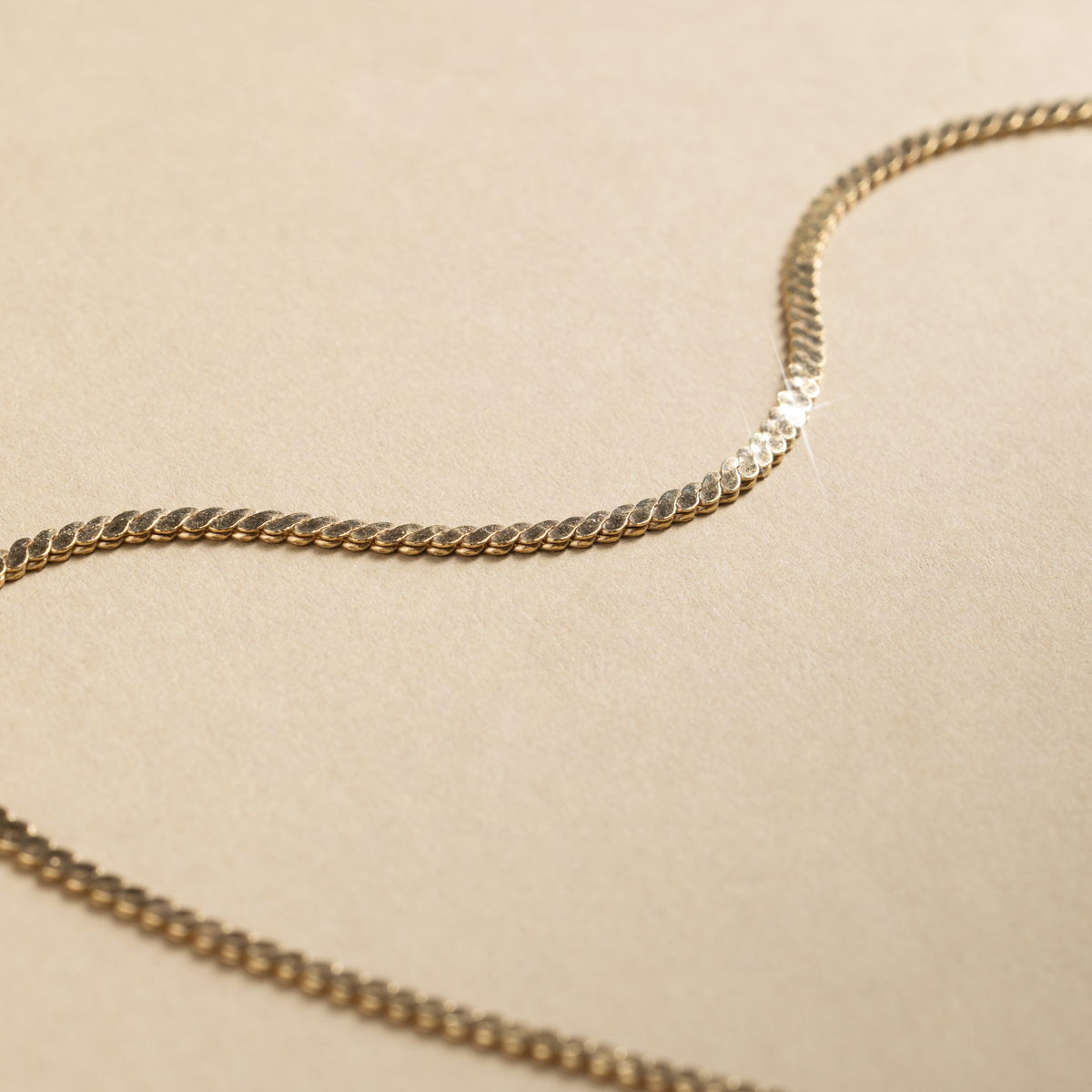 A smooth and subtle glow-up. The Serpentine Chain Necklace drapes like liquid gold across your collarbone, catching the light in all the right ways. It’s the kind of piece that elevates every outfit effortlessly.