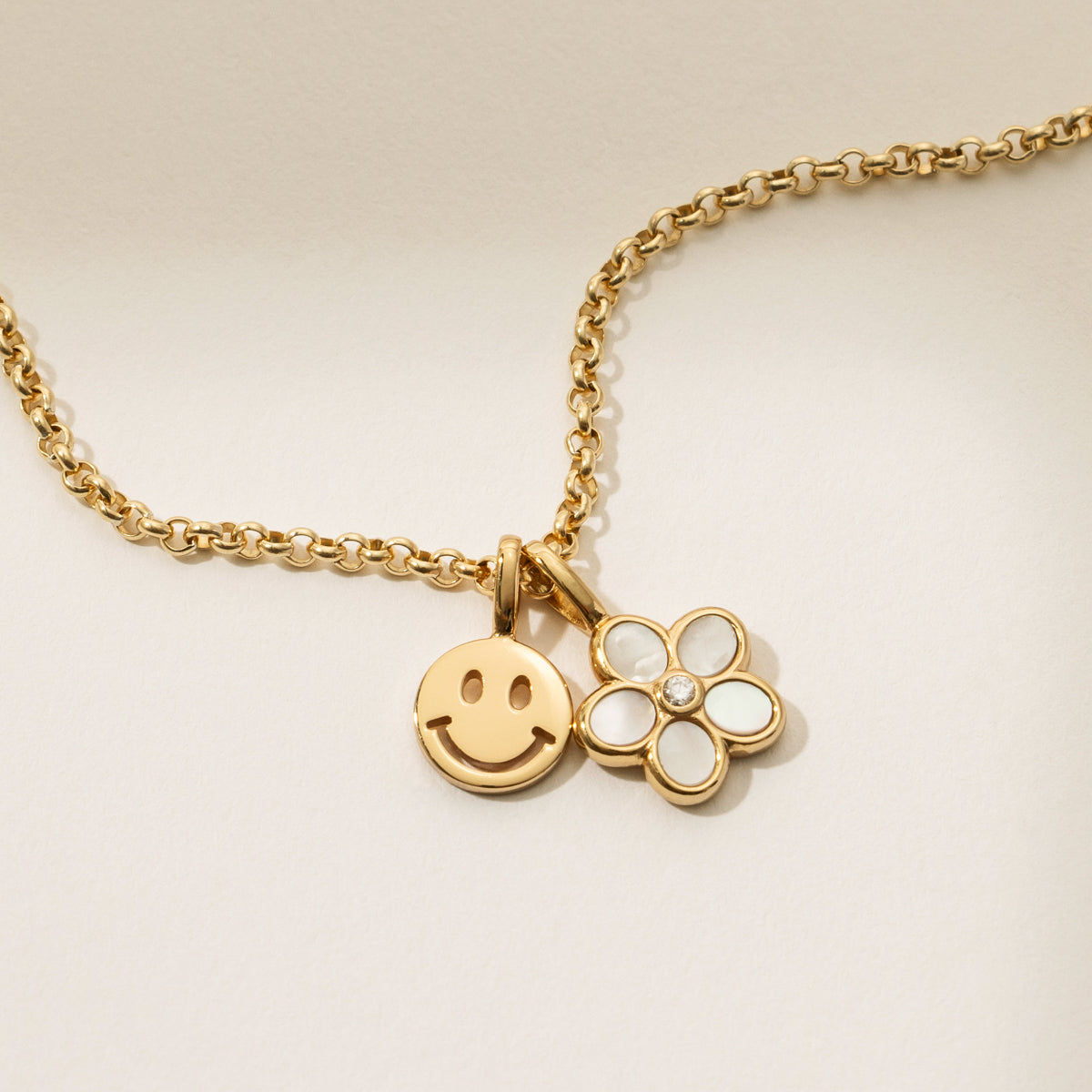 Grin and share it. The Smiley Face Charm is a wearable way to remember that joy is contagious. This fresh design features a retro style that will bring a smile to those everyday moments. Nothing is impossible when you’ve got a little positivity for perspective.