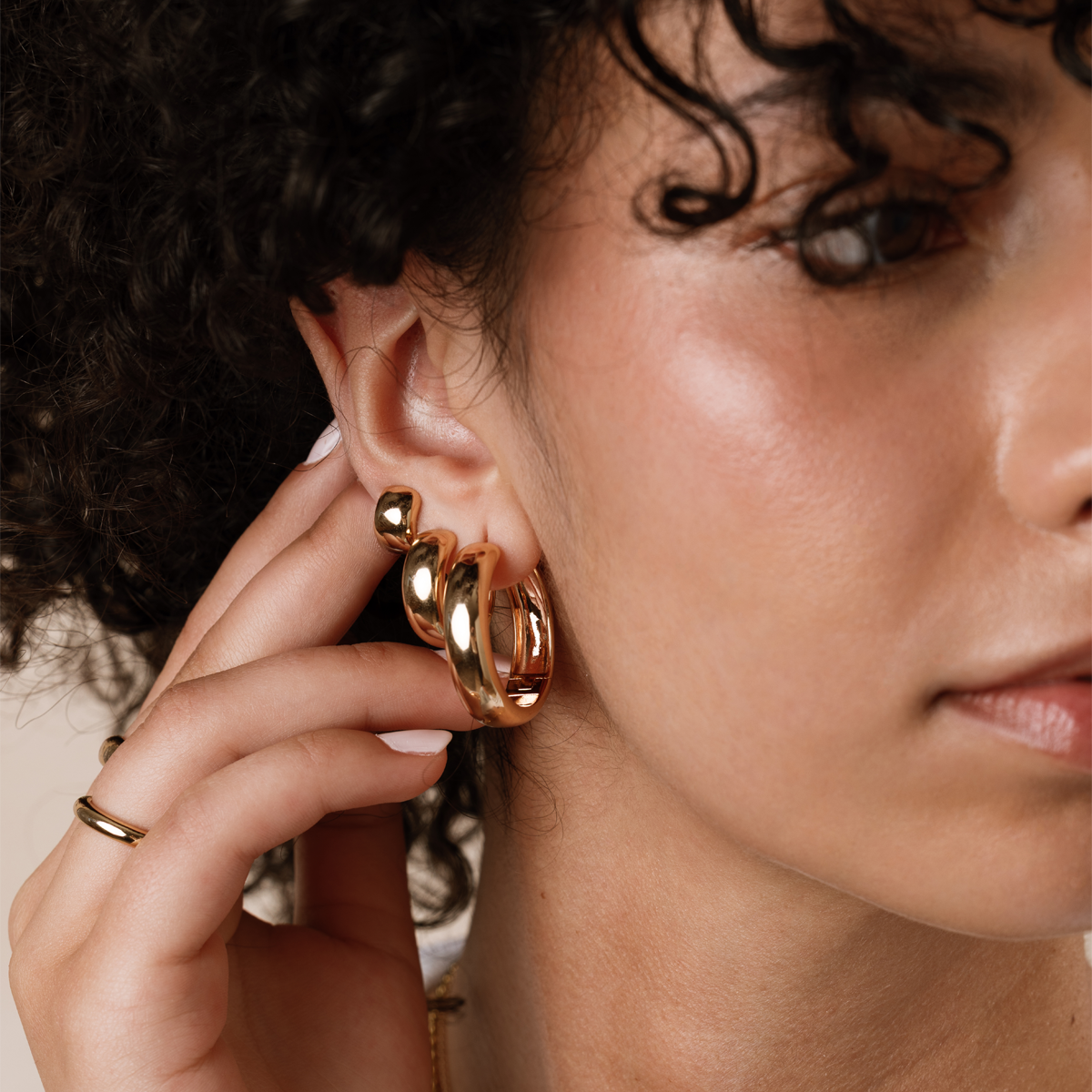 Go all in. These chunky hoops are bold in the best way– lightweight, luminous, and designed to keep you glowing long after the sun sets.